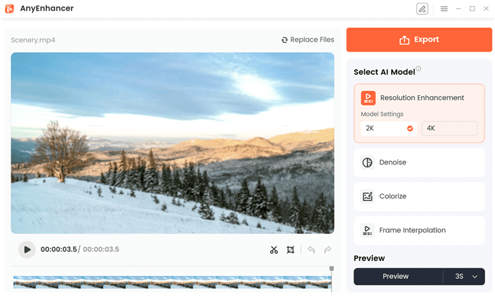 ما عليك سوى تحميل الفيديو الخاص بك واختيار نموذج الذكاء الاصطناعي والسماح لـ AnyEnhancer بالقيام بسحره. وهو يعمل على كل من ويندوز وماك. علاوة على ذلك، فإنه يوفر معاينات في الوقت الفعلي وخيارات تصدير متعددة. مثالي لأي شخص يريد مقاطع فيديو بجودة احترافية بأقل جهد.