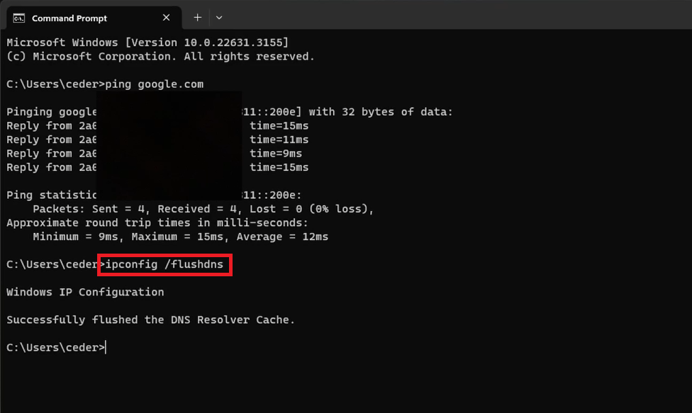 ipconfig /flushdns.