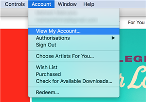 الخطوة 2. عند فتح التطبيق، انقر فوق الخيار الذي يشير إلى "الحساب" في الأعلى واختر "عرض حسابي". سيتم فتح التفاصيل الخاصة بحساب Apple الخاص بك.