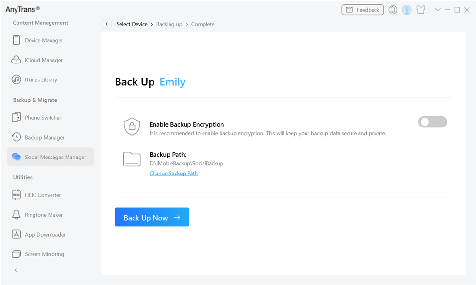 إذا نفدت مساحة iCloud أو وجدت أن Google Photos أقل مرونة، فإن AnyTrans يقدم طريقة أفضل وأكثر ملاءمة لعمل نسخة احتياطية من صور iPhone الخاصة بك. إنها أداة سطح مكتب ذكية تمنحك التحكم الكامل في بياناتك.