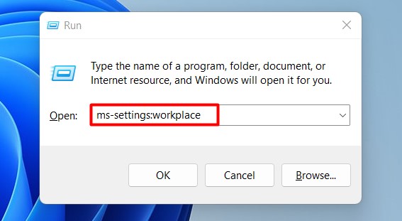 الخطوة 2:اكتبإعدادات مللي: مكان العملفي الصندوق