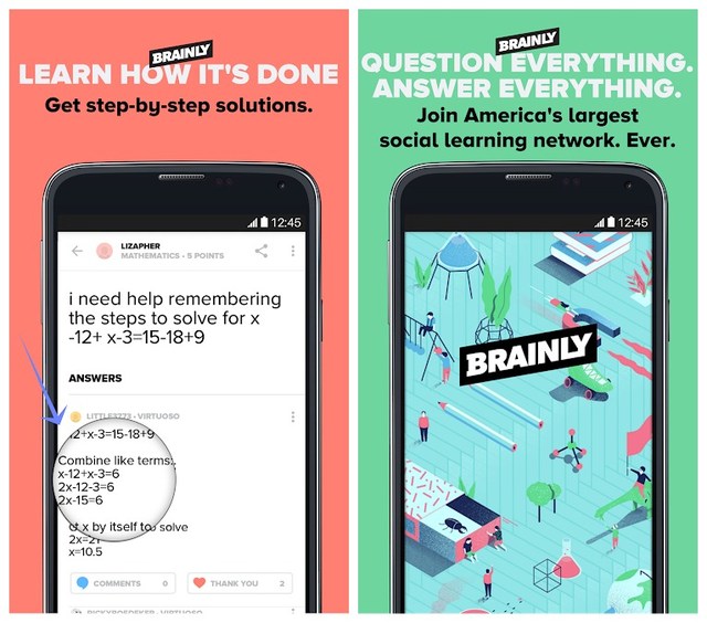 كما يقول شعاره "للطلاب، من قبل الطلاب" فهو يناسب هذا التطبيق فقط، تطبيق Brainly عبارة عن حزمة كاملة حيث يمكنك العثور على الطلاب كمدرسين، ما يحدث في الواقع هو أنك تنشر سؤالاً وسيتم الرد عليه بشكل صحيح من قبل عدد من الطلاب في دقائق، أو إذا كنت تعرف الإجابات، يمكنك الإجابة على أسئلة شخص ما. لا يهم إذا كان سؤال الرياضيات أو سؤال الكيمياء، فقط قم بنشره واحصل على إجابتك.