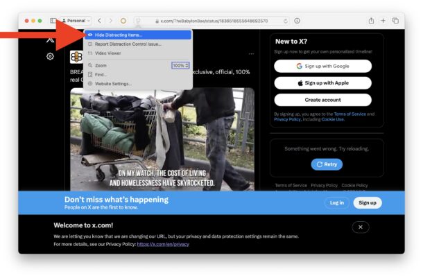 يبدو أن كل موقع ويب تقريبًا في الوقت الحاضر به الكثير من الفوضى المزعجة التي تسد الشاشة، سواء كانت إشعارات ملفات تعريف الارتباط العملاقة، أو مقاطع الفيديو التي يتم تشغيلها تلقائيًا، أو النوافذ المنبثقة "تسجيل الدخول باستخدام Google/Microsoft/Facebook"، أو طلبات الاشتراك، أو النوافذ المنبثقة للرسائل الإخبارية، أو الإعلانات البغيضة، أو أي عناصر أخرى مزعجة أو مشتتة للانتباه على الصفحة. وهنا يأتي دور ميزة التحكم في التشتيت الجديدة في Safari، والتي تتيح لك تحديد تلك الأشياء المزعجة وجعلها تختفي.