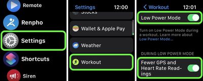 تقول Apple أنه مع تمكين الإعدادات المذكورة أعلاه، يحافظ وضع الطاقة المنخفضة على عمر البطارية فقط أثناء تمارين المشي والجري والمشي لمسافات طويلة، عن طريق تقليل تردد نظام تحديد المواقع العالمي (GPS) وقراءات معدل ضربات القلب (يتم تقليل قراءات معدل ضربات القلب إلى مرة واحدة في الدقيقة، بينما يتم تقليل قراءات نظام تحديد المواقع العالمي (GPS) إلى مرة واحدة كل دقيقتين) وإيقاف تشغيل التنبيهات والانقسامات والمقاطع. بمعنى آخر، هذا يعني أنه للحصول على 60 ساعة كاملة من عمر البطارية،ستحتاج إلى تمكين وضع الطاقة المنخفضة خارج التدريبات أيضًا.