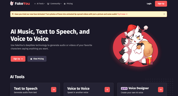 FakeYouهو حل آخر لتغيير الصوت يمكنك استخدامه لإدارة شخصيتك براحة تامة. فهو يجعل تغيير الصوت في متناول المستخدمين من جميع المستويات. سواء كنت على دراية بتكنولوجيا المعلومات أم لا، تساعدك هذه المنصة على تعديل صوتك ليبدو وكأنه ذكر أو طفل أو ما إلى ذلك.
