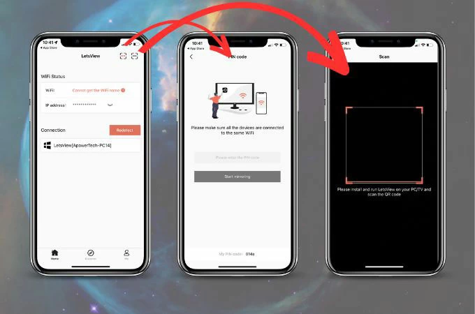 LetsView هو تطبيق مجاني لعكس الشاشة يسمح لك بتوصيل جهازك المحمول لاسلكيًا بالكمبيوتر أو التلفزيون أو الأجهزة الأخرى ومشاركة شاشتك مع جمهور أكبر. يدعم LetsView مجموعة واسعة من الأجهزة، بما في ذلك أجهزة التلفزيون الذكية وأجهزة البث ووحدات تحكم الألعاب، ويستخدم Wi-Fi لتوصيل أجهزتك، حتى تتمكن من عكس شاشتك دون الحاجة إلى كابلات أو أجهزة أخرى. يدعم التطبيق أيضًا التحكم عن بعد، حتى تتمكن من التحكم في جهاز الكمبيوتر أو التلفزيون من جهازك المحمول. مع هذا التطبيق، سيكون نشاط النسخ المتطابق لشاشة Vizio Smart TV خاليًا من المتاعب بالنسبة لك.