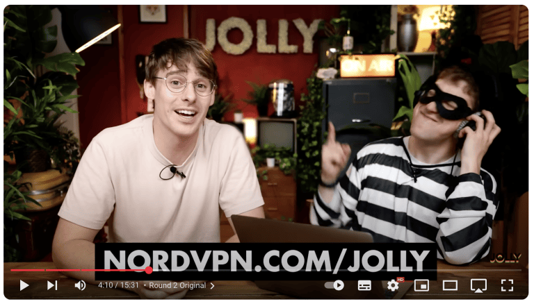 محتوى ألعاب جاك وأعماله الخيرية أحيانًايتميز NordVPNخلال المقاطع الإعلانية.