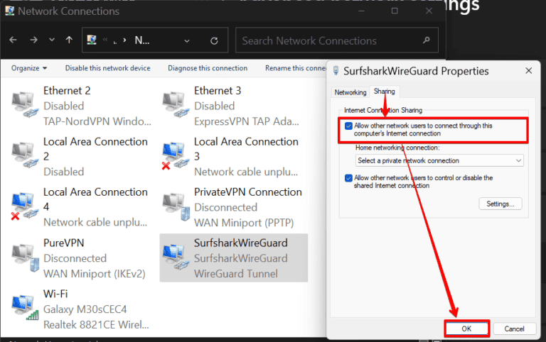 - انقر بزر الماوس الأيمن "Surfshark WireGuard" وحدد "ملكيات.”