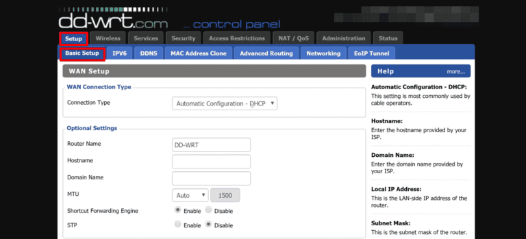 - انتقل إلى واجهة مسؤول DD-WRT وانتقل إلىالإعداد> الإعداد الأساسي.