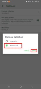 - اذهب الىالإعدادات > البروتوكولات > اختيار البروتوكول > WireGuard.