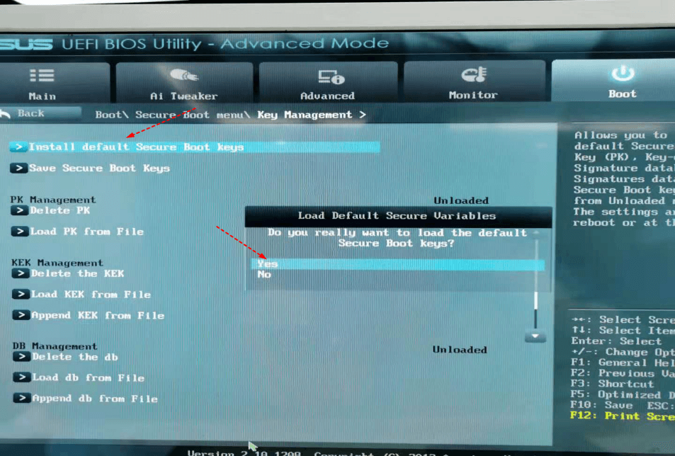 الخطوة 3.انقر فوق "قم بتثبيت مفاتيح التمهيد الآمنة الافتراضية". الآن تم تمكين التمهيد الآمن.