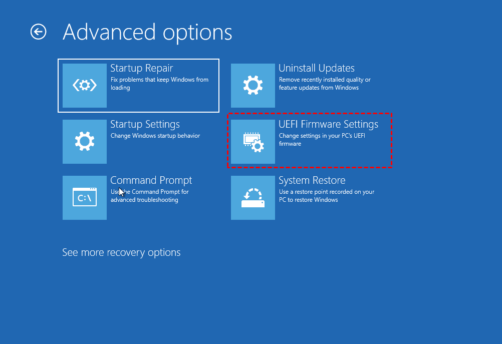 الخطوة 3.انقر فوق "إعدادات البرامج الثابتة UEFI"لفتح BIOS.