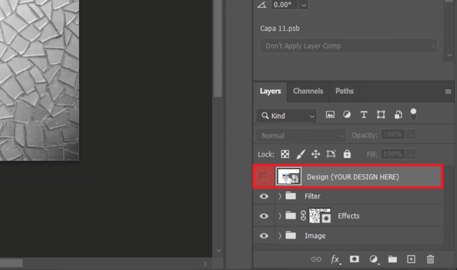 انقر نقرًا مزدوجًا فوق طبقة النص "التصميم (تصميمك هنا)".