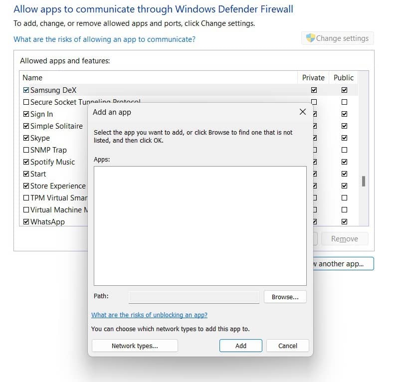أفضل طريقة للتعامل مع هذا الموقف هي السماح للعملية بالعمل على جدار حماية Windows وبرامج الأمان الأخرى. إليك كيفية القيام بذلك –