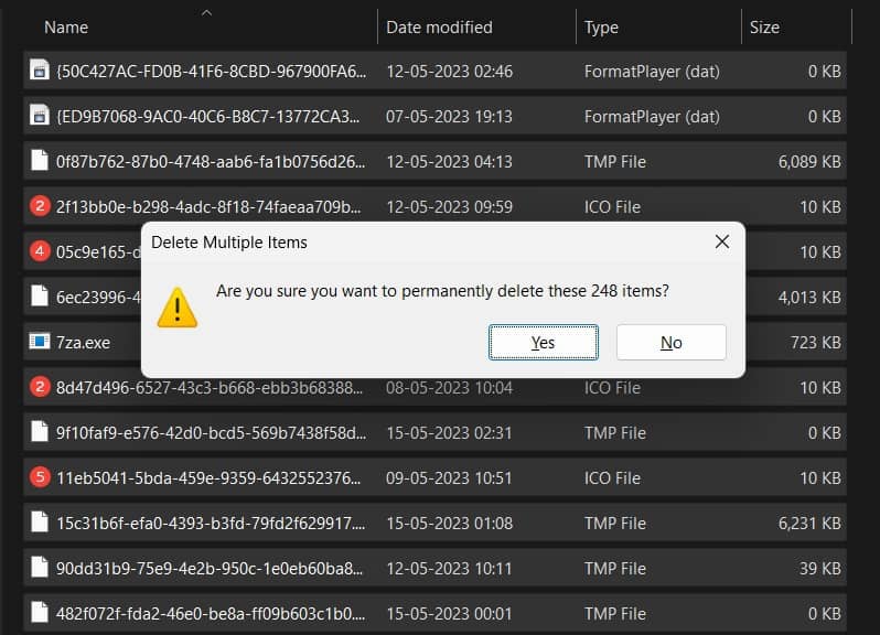 الخطوة 4 - اضغط على Ctrl+A وShift+Del لحذف هذه الملفات على الفور.