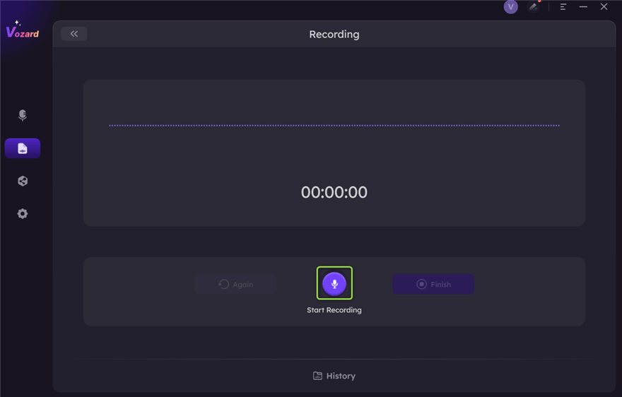 الخطوة 1.بعد تكوين إعدادات الصوت في Vozard، انقر فوق "الوضع المسجل" على الشريط الجانبي الأيسر.