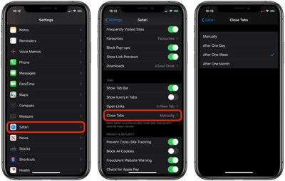 إذا كنت لا تزال غير قادر على العثور على بعض علامات التبويب الخاصة بك، فتأكد من أن Safari لا يغلقها بعد مدة معينة نيابةً عنك: افتحإعدادات، اضغط علىسفاري -> إغلاق علامات التبويبوالتأكد من ذلكيدوياتم تحديده.