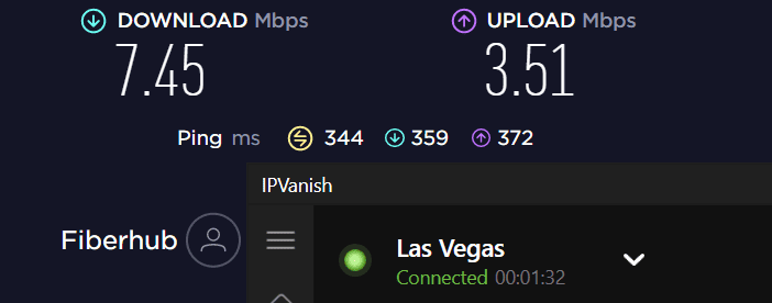 بالنسبة للمجموعة التالية من الاختبارات، قمت بالاتصال بخوادم IPVanish المعينة علىبروتوكول WireGuard، أسرع بروتوكول يقدمه VPN.