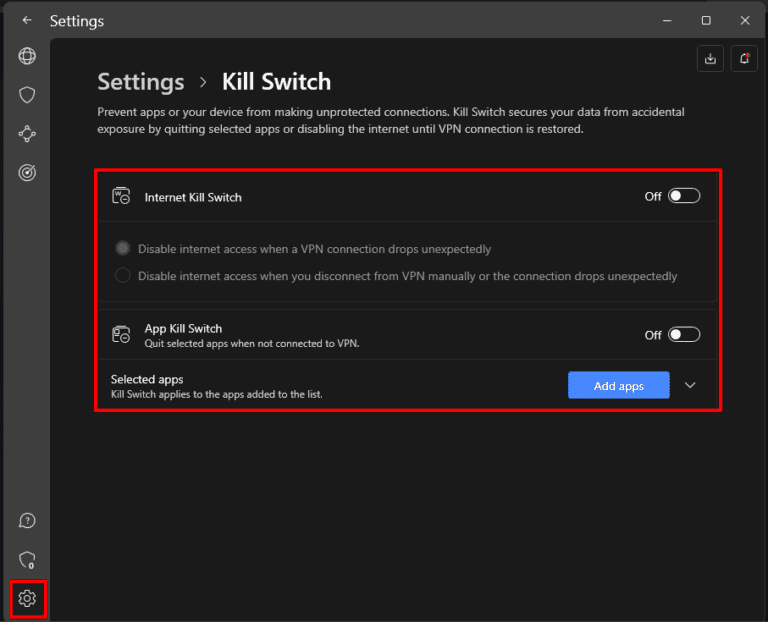 - قم بتنشيط مفتاح القفل NordVPN لتأمين اتصالك بالإنترنت حتى عند انقطاع اتصال VPN. اذهب من خلالإعدادات>قتل التبديل>مفتاح إيقاف الإنترنت.