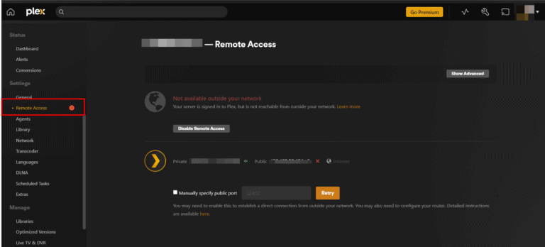 - تعطيل VPN أثناء الوصول عن بعد: يتيح ذلك لتطبيق Plex Media الاتصال بعنوان IP الفعلي الخاص بك، وتجاوز الخطأ "غير متوفر خارج شبكتك".