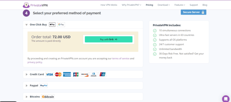- اختر طريقة الدفع المفضلة لديك. لديك خيارات بطاقة الائتمان، وPayPal، وApplePay، وGooglePay، وBitcoins.