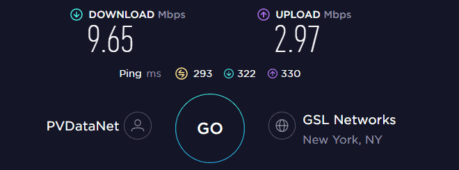 إذا قارنت سرعة التنزيل الأساسية مع سرعة التنزيل عند الاتصال بخادم نيويورك، فستلاحظ فرقًا بنسبة 24%. هذا الاختلاف ليس كبيرًا بما يكفي للتأثير على تغيير ملحوظ عند استخدام PrivateVPN مع Plex.