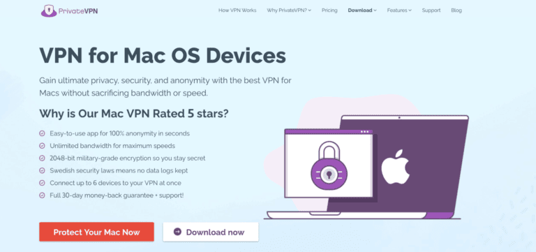 - قم بتثبيت PrivateVPN على جهاز MacBook الخاص بك عن طريق تنزيل التطبيق من موقع PrivateVPN.
