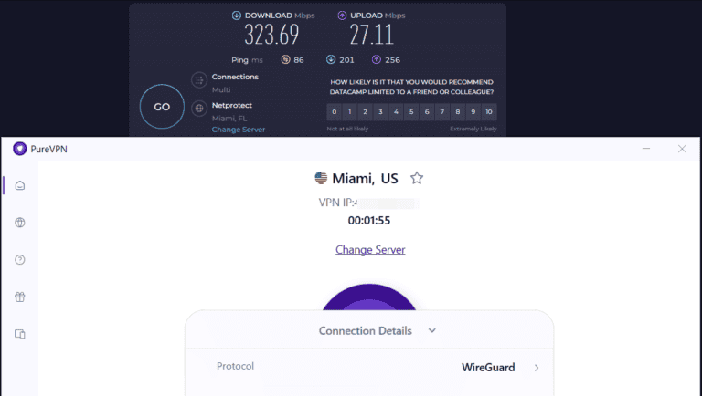 على سبيل المثال، يعد خادم Miami الخاص بـ PureVPN هو الأفضل للحفاظ على سجل التصفح الخاص بك آمنًا من T-Mobile أو AT&T أو مزودي خدمة الإنترنت الآخرين في فلوريدا دون التضحية بالسرعة.