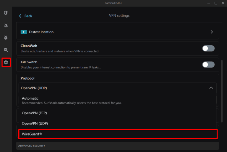 - اذهب الىإعدادات>بروتوكولواختر "WireGuard". يتيح لك ذلك بث إصدارات عالية الدقة من مقاطع فيديو YouTube المحظورة والقنوات الإخبارية عبر الإنترنت دون مخاطر أمنية أو اختناق سرعة Turkcell.