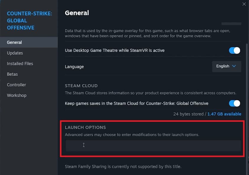 نعم، قد يؤدي تعديل خيارات التشغيل في بعض الأحيان إلى حل خطأ VAC. للقيام بذلك، انتقل إلى خصائص اللعبة في مكتبة Steam الخاصة بك، وحدد موقع قسم "خيارات التشغيل" في علامة التبويب "عام"، وقم بإزالة جميع خيارات الإطلاق الحالية. قم دائمًا بتشغيل اللعبة من خلال مكتبة Steam لتجنب أي خلل محتمل.