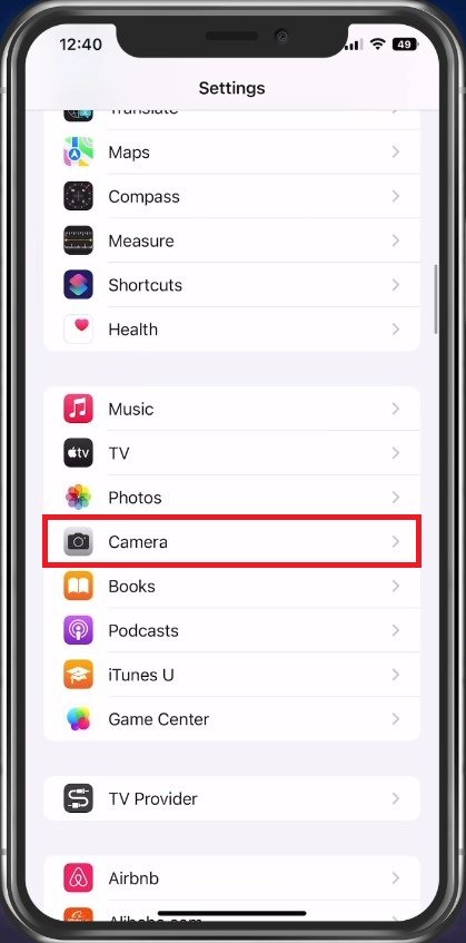 إعدادات iOS > الكاميرا