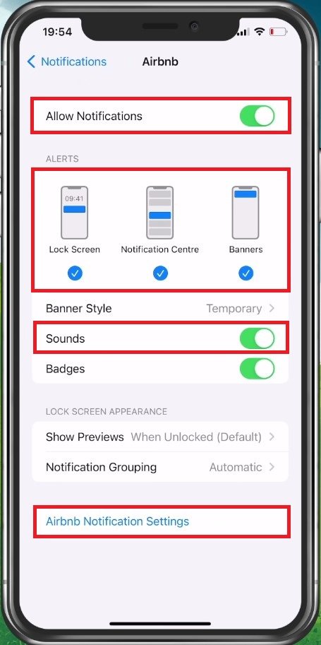 تمكينالسماح بالإخطاراتخيار. أدناه، يمكنك تمكين أو تعطيل الإشعارات من هذا التطبيق في جهازكقفل الشاشة,مركز الإشعارات،وكمالافتاتأثناء استخدام جهاز iPhone الخاص بك. سأقوم بتمكين كل هذه العناصر الثلاثة للتأكد من أن التطبيق يمكنه إرسال الإشعارات. أدناه، تمكينيبدوإذا كنت ترغب في سماع صوت الإخطار لهذا التطبيق.