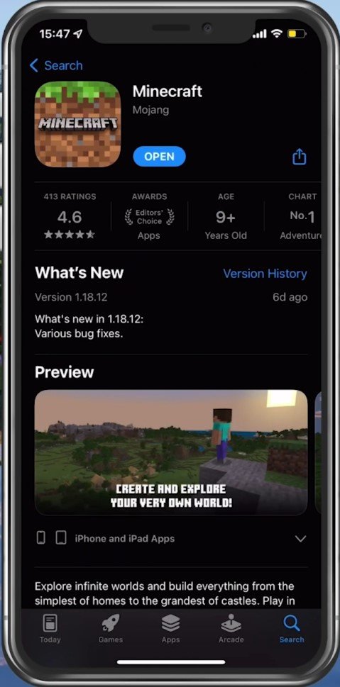 في الخاص بكمتجر التطبيقاتأومتجر جوجل بلاي، ابحث عن Minecraft Pocket Edition. سيُظهر لك هذا ما إذا كان التطبيق محدثًا أم لا، مما قد يمنعك أيضًا من لعب اللعبة.