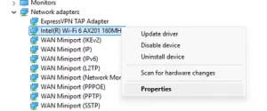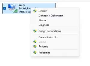 2. انقر بزر الماوس الأيمن على اتصال الإنترنت النشط الخاص بك وحدد خصائص.