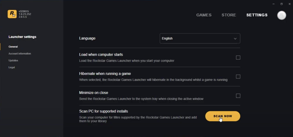 مشغل Rockstar Games > إعدادات المشغل > عام