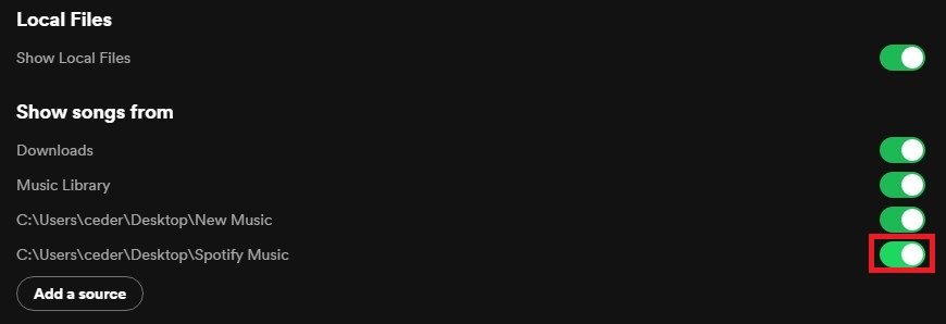 تمكين ملفات Spotify المحلية