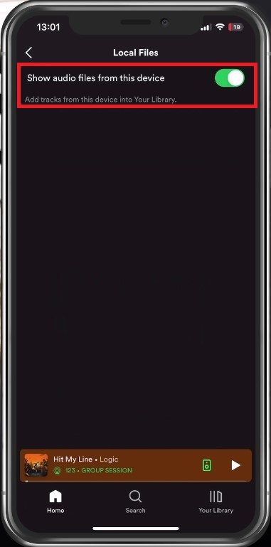 للحصول على هذه الأغاني على جهاز iPhone الخاص بك، افتح تطبيق Spotify. يمكن لمستخدمي Android أيضًا المتابعة. انتقل إلى الإعدادات الخاصة بك، وهنا، تحتالملفات المحلية، تأكد من أنعرض الملفات الصوتية من هذا الجهازتم تمكين الخيار. سيظهر بعد ذلك نفس مجلد الملفات المحلية في مكتبتك.