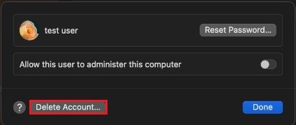 يتيح لك هذا إعادة تعيين كلمة المرور، أو تغيير إعدادات المستخدم الإضافية، اعتمادًا على نوع الحساب، أو إزالة المستخدم من جهاز Mac الخاص بك هنا.