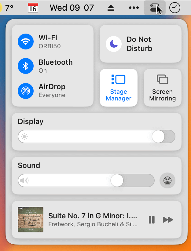 على شريط القوائم وقم بتشغيل وظيفة AirPlay.