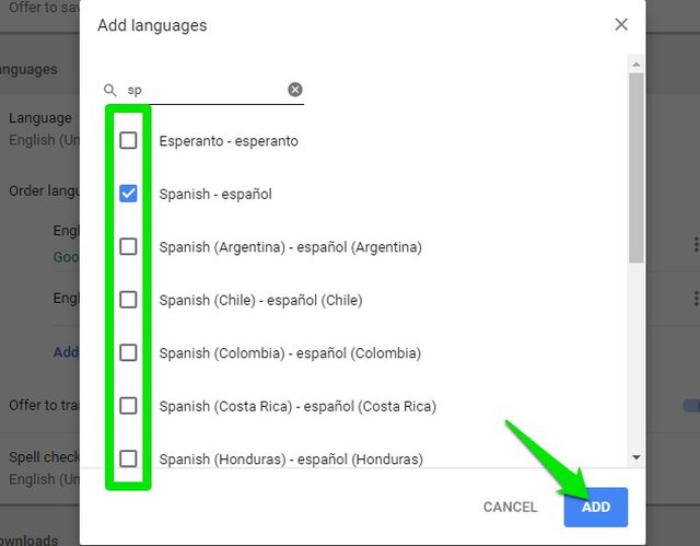 5. حدد مربع الاختيار الموجود بجوار اللغة (اللغات) التي تريد إضافتها ثم انقر فوق"يضيف".