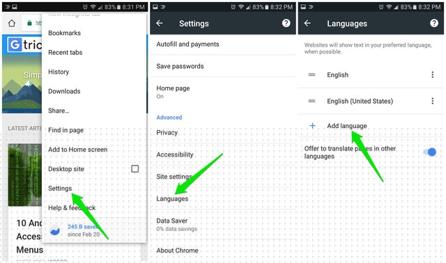 لقد أدرجت أدناه طريقتين لتغيير اللغة في Chrome لنظام Android. يمكنك استخدام أي واحد منهم حسب احتياجاتك.