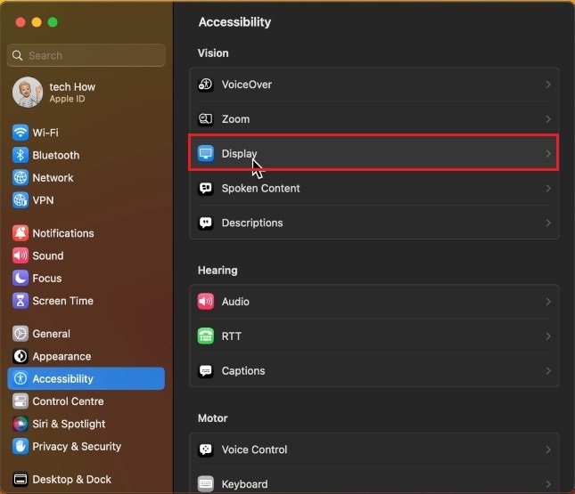 أثناء استخدام جهاز Mac الخاص بك، انقر فوق أيقونة Apple في الجزء العلوي الأيسر من شاشتك وحددإعدادات النظام. بالنسبة لمستخدمي macOS Ventura والإصدارات الأحدث، انتقل إلىإمكانية الوصولالقسم واختيارعرض.