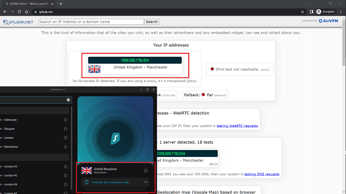 - قبل الاتصال، تحقق من تفاصيل عنوان IP الحالي الخاص بك. أنا استخدمwww.ipleak.net. حتى أنه يظهر مزود خدمة الإنترنت الحقيقي الخاص بك في بعض الأحيان.