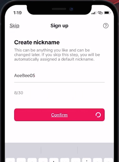 بعد ذلك، قم بإنشاء اسم ملفك الشخصي والذي سيكون هويتك على TikTok. يضرب