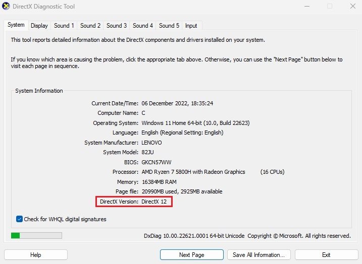تحقق من إصدار DirectX على نظام التشغيل Windows