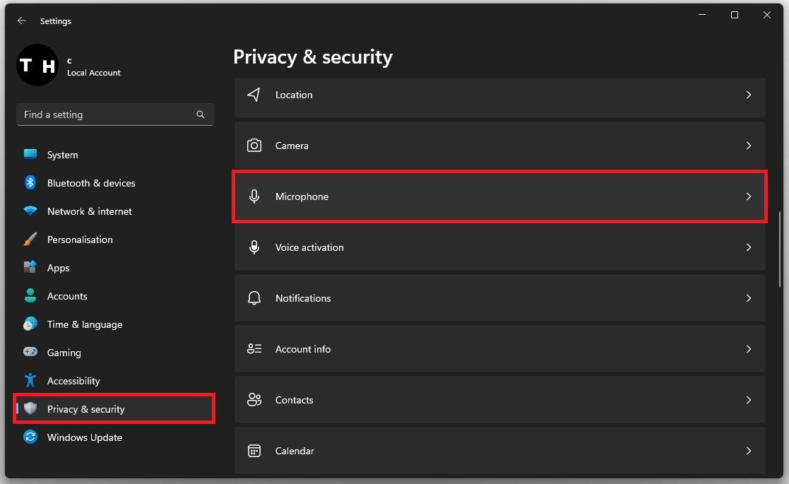 إعدادات Windows > الخصوصية والأمان > الميكروفون