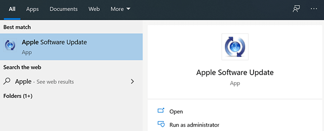 - بحث عن تحديث برامج Apple باستخدام قائمة ابدأ على جهاز الكمبيوتر الخاص بك وانقر عليها.