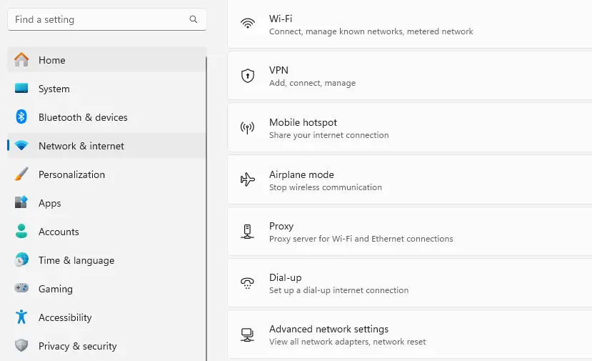1. اضغط على Win + I لفتح الإعدادات وانقر على الشبكة والإنترنت.