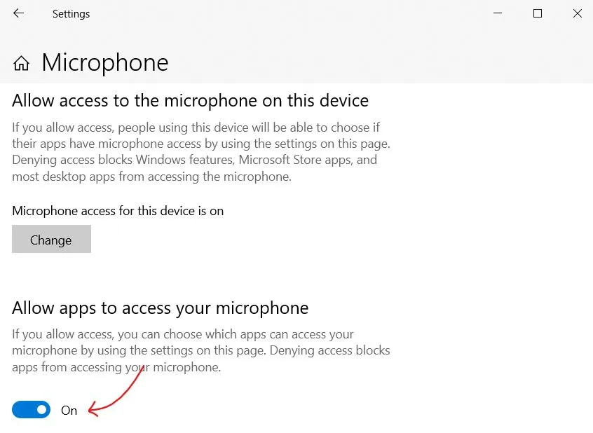 2. السماح بالوصول إلى الميكروفون في إعدادات خصوصية Windows