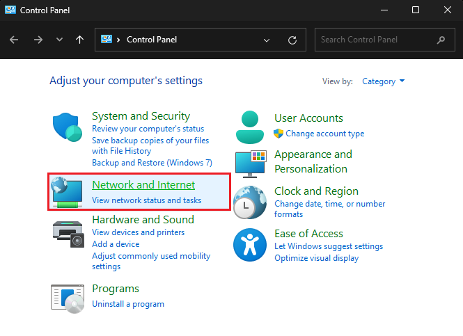 في لوحة التحكم، تأكد من تحديد "عرض حسب: الفئة" لتسهيل التنقل.